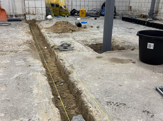 The project began with full site preparation, which involved clearing the existing wash-up area and removing the old rack dishwasher along with the aluminium condensing hood. This allowed the team to start with a clean, open space ready for structural and mechanical improvements.