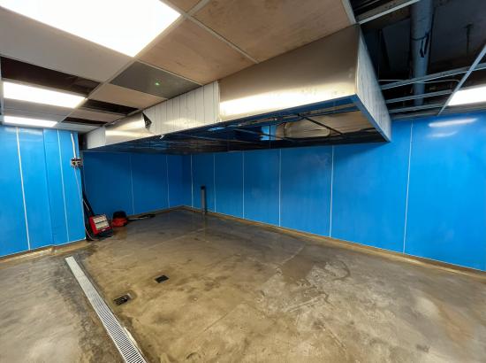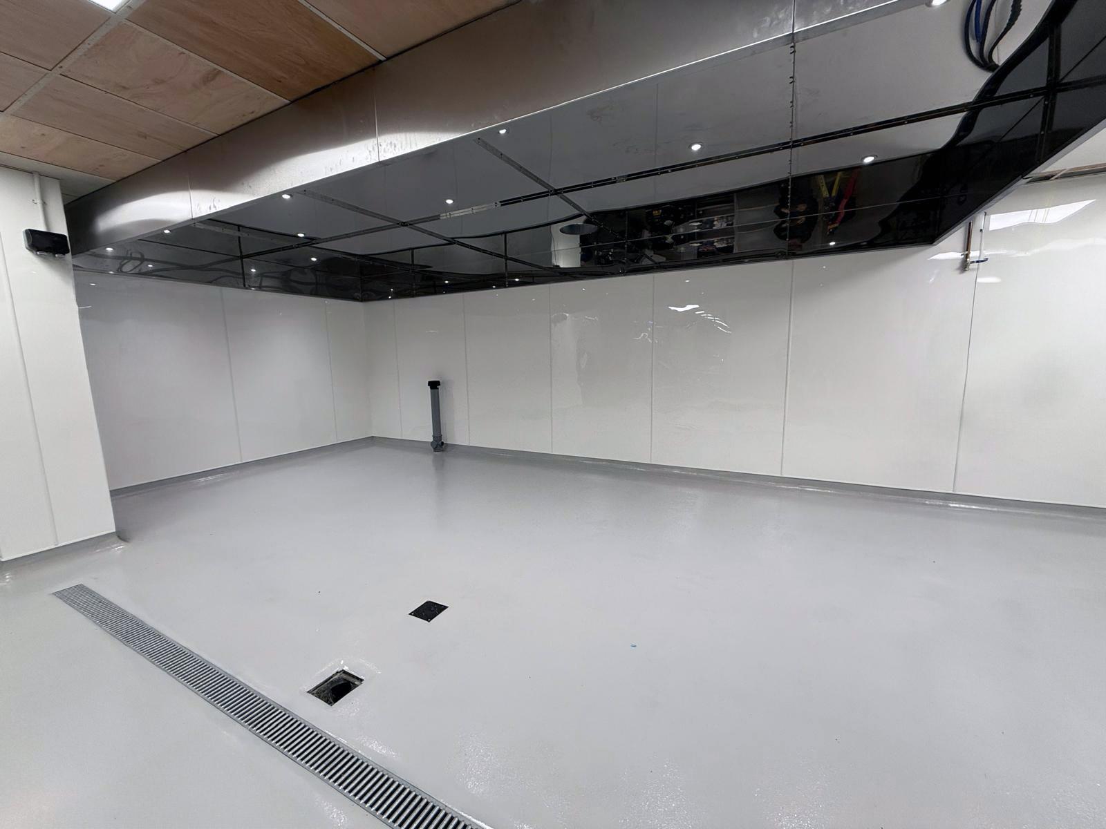 With the flooring complete, our in-house building team focused on upgrading the walls and ceiling. We installed fire-rated uPVC wall cladding throughout the wash-area to create a clean, hygienic, and easy-to-maintain surface, while a matching fire-rated uPVC ceiling was fitted to deliver a professional, durable finish.