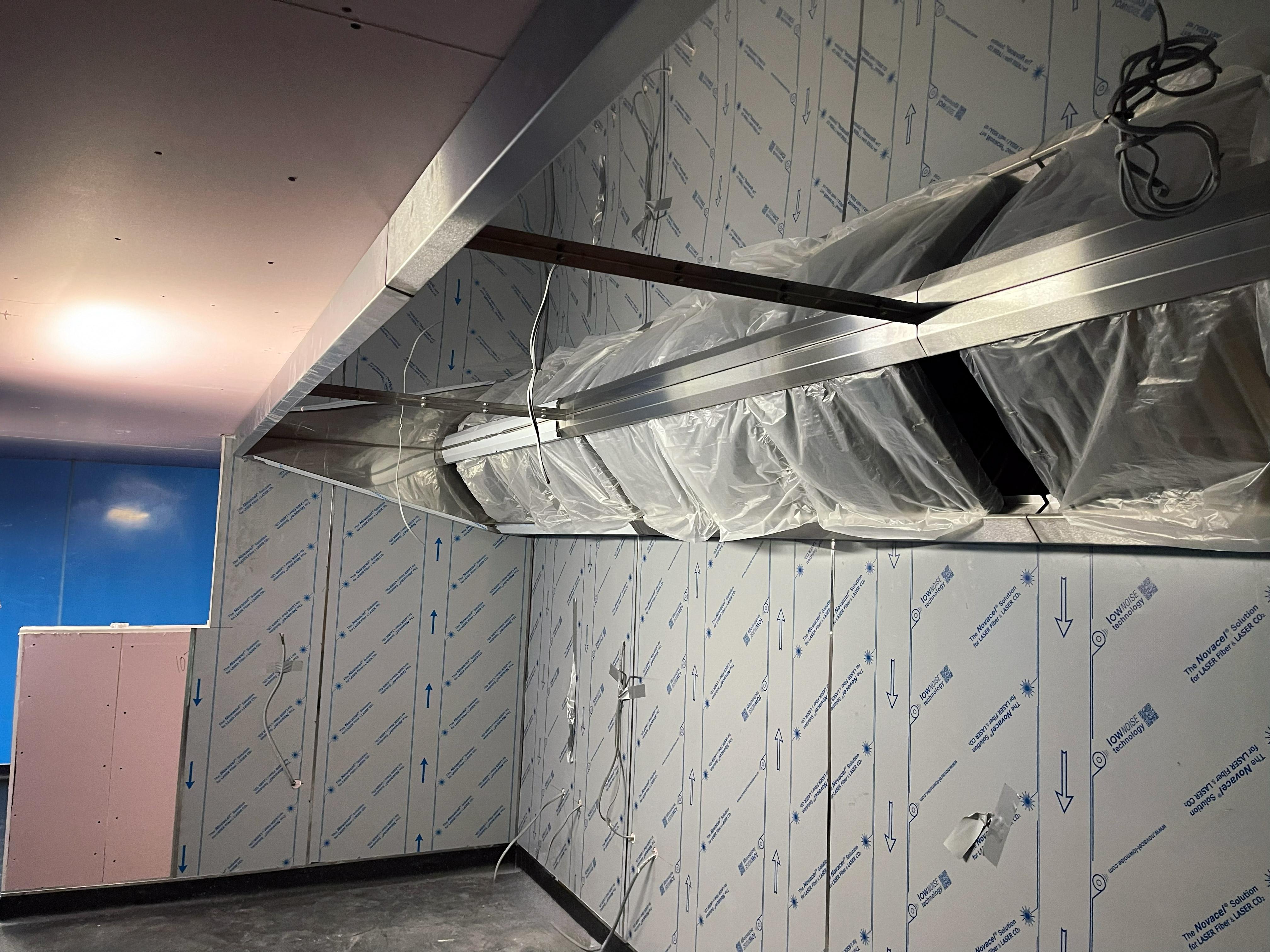 We supplied and installed white food grade plastic and stainless steel wall cladding as well as UPVC food grade ceiling cladding. We designed and fabricated a brand-new commercial kitchen canopy and ductwork system for the cook line and supplied and installed the new cooking equipment as requested. A new ware washing area and pot wash area was created using fabricated tabling, shelving and a new dishwasher. The work was completed entirely by our in-house team.