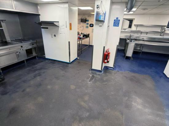 After the flooring had fully dried, all kitchen equipment was carefully reinstalled, allowing the space to be handed back ready for immediate use. Despite a tight one-week programme, the project was completed on time and within the agreed timeframe, ensuring minimal disruption and enabling the kitchen to return to service as scheduled.